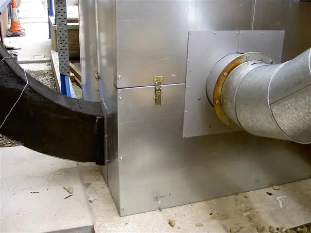 - A four-sided acoustic enclosure, complete with inline silencers, houses a paper stream blower fan responsible for handling waste collected for recycling. The enclosure was constructed using Acuvent’s tested panel construction augmented with quick-release access toggles. The inline paper stream extract silencers were designed to allow paper to pass through without getting caught, thereby preventing machine downtime due to paper blockages.