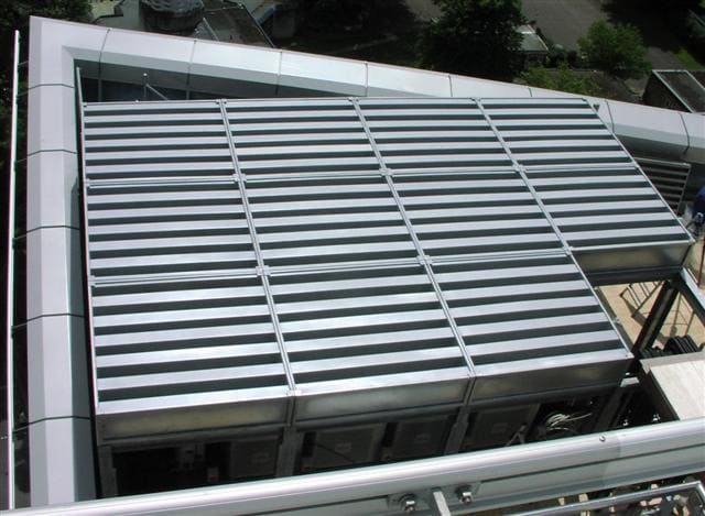 - Plantroom weather louvres and insulated thermal panelling for non-functional areas of the louvre bank, with dimensions of 24.4m L x 2m H.